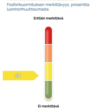 Jos ihmisen aiheuttama fosforikuormitus on 100 % luonnonhuuhtoumasta, eli se on vähintään luonnonhuuhtouman verran, on ihmistoimintojen vaikutus vesistön fosforipitoisuuteen merkittävää.